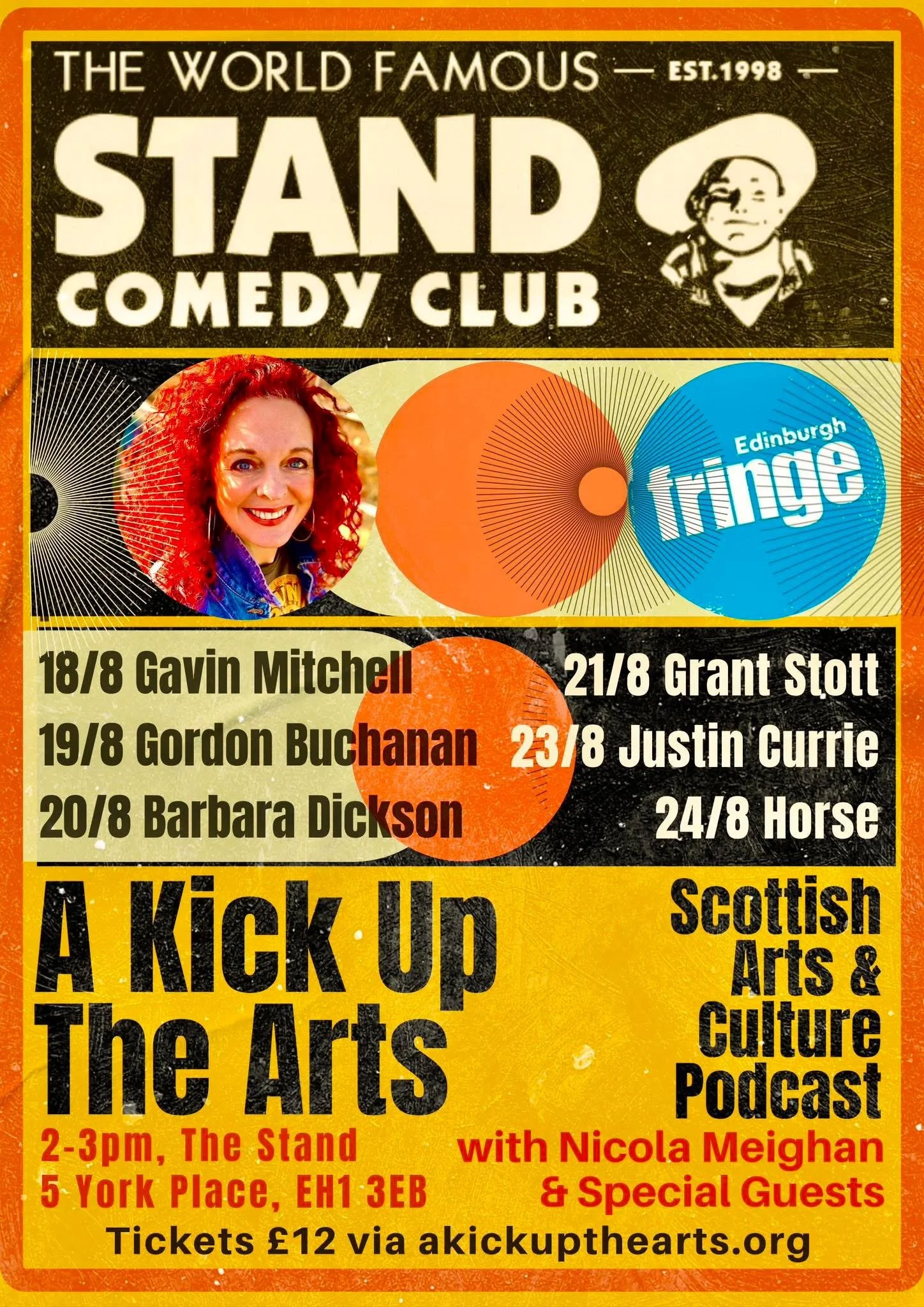 Just added a special A KICK UP THE ARTS with Nicola Meighan at the Stand in Edinburgh as part of the Edinburgh Festival fringe We shall of course chat and I shall sing a bit … see my live pages for tickets If you have any burning questions msg myself or Nicola …
