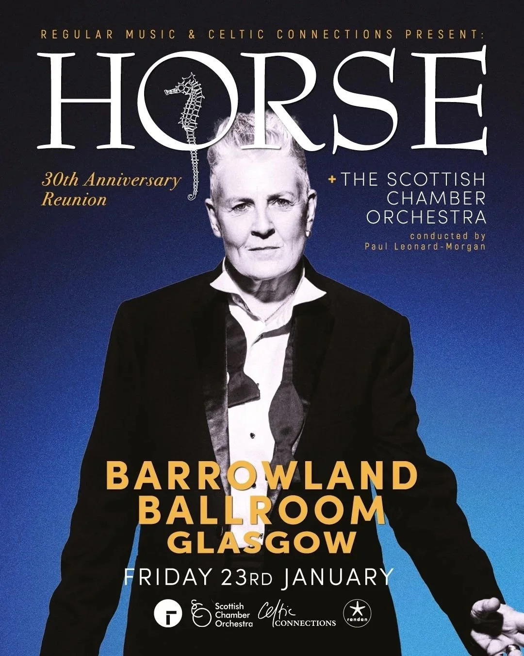 TADA !!!! HORSE with the Scottish Chamber Orchestra at the Barrowland Ballroom. The 30th anniversary reunion show with special guests, as part of CELTIC CONNECTIONS 2026 Conducted by Paul Leonard Morgan FRI 23RD JANUARY ( tickets standing or seated ) tickets here
